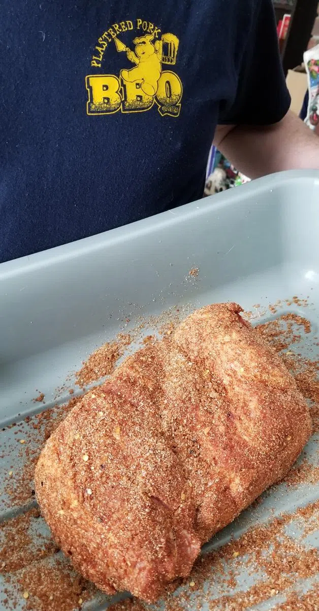 Prep the meat the same way as always. I like to rinse the meat and pat it dry with a paper towel, then cover with a thin layer of yellow mustard to help the rub stick. The flavor of the mustard will not stay, but you can also use maple syrup or even olive oil if you like. Then generously apply your favorite rub and let the meat sit in the refrigerator for at least an hour.