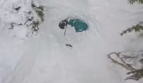 Now my guess is that if you’re a veteran skier or snowboarder, and you’re skiing or snowboarding in locations like this, you are prepared for anything. But credit to this skier for not only noticing this guy, but for having the necessary tools on hand to dig him out of a precarious situation. The first time I watched this thing through I was trying to think of what I would even do if I were in a similar situation and the most obvious answer is that I would somehow end up upside down right next to him. And as far as I know you can’t blog your way out of being stuck upside down in a tree well. Wild.