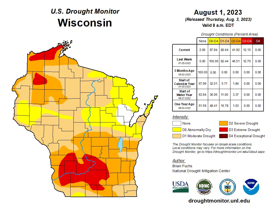 Recent rains have been beneficial, but not enough to impact the long-term drought affecting Sheboygan County and much of the midwest. Storms that moved through on Thursday contributed up to a quarter inch of rain, while 7-day totals preceding that in Sheboygan County ranged up to an inch-and-a-half, but with deficits of two, to four inches in the last six months, most of the county remans in a moderate to severe drought.