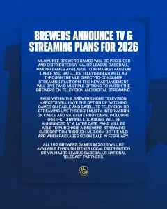 Live look at a grateful fanbase: Free at last, free at last! Now look, we've been teased with this before. I think it was two years ago that we first heard rumblings that the Brewers were set to cut ties with FanDuel Sports. And then they signed another contract. Then a year ago there were MORE rumors that they were do...